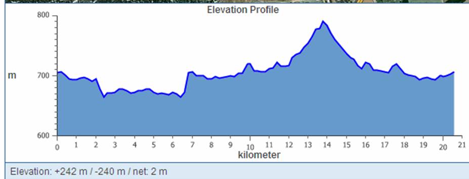 Este es el perfil... parece que hay al menos una buena cuestecilla y algún que otro repecho.